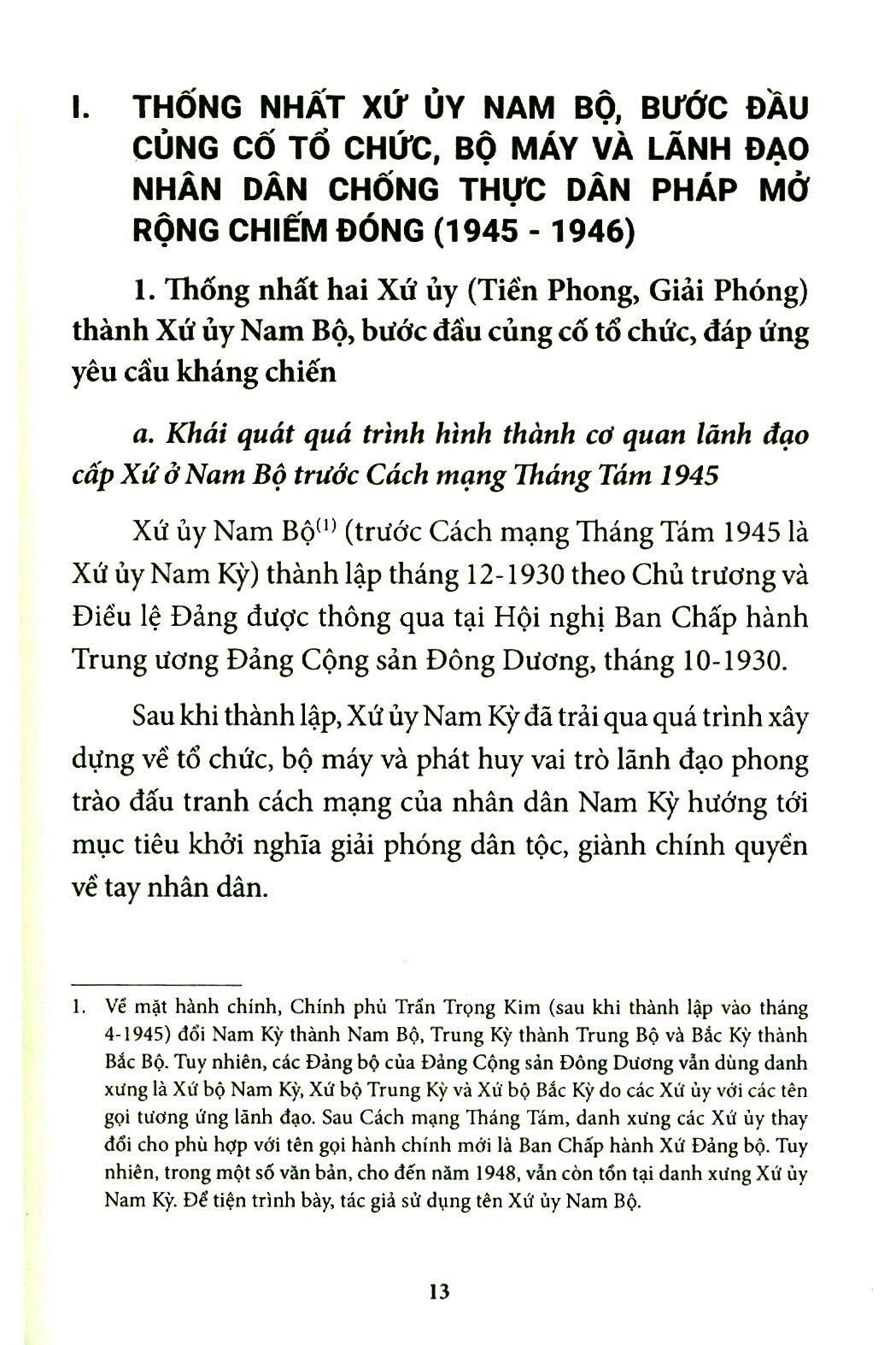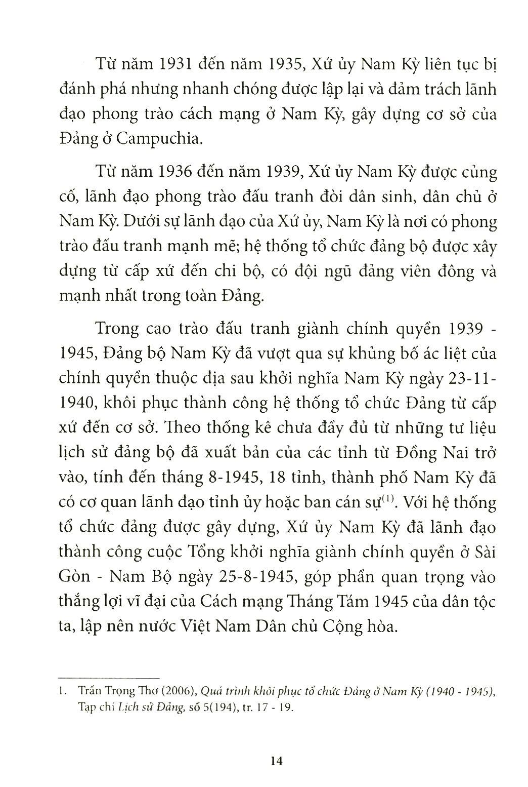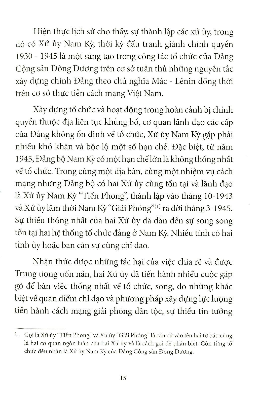 Cuốn sách làm sáng rõ quá trình xây dựng, đặc điểm tổ chức, hoạt động và vai trò của cơ quan lãnh đạo của Đảng ở Nam Bộ trong kháng chiến chống thực dân Pháp xâm lược trên địa bàn được phân công phụ trách.